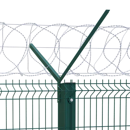 Специальный кронштейн для крепления колючей проволоки типа "Егоза", специально для режимных объектов. Так же устанавливается противоподкопная сетка.
