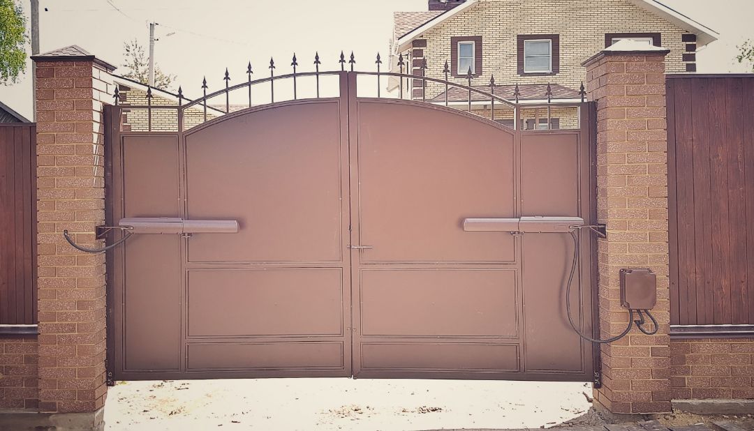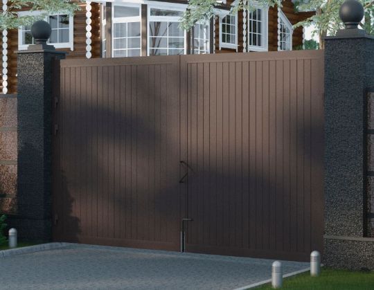 распашные ворота это традиционный тип въездной группы, сочетающий в себе массу преимуществ, основным из которых является демократичная цена и простота монтажа.