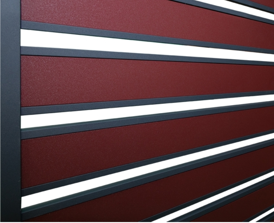 Как элемент дизайна предлагаем чередовать и совмещать в одной секции ламели разной ширины, цвета и покрытия.